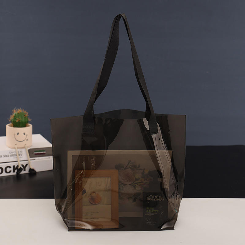 Bolsa de maquillaje ecológica impermeable transparente de PVC colorido de venta directa de fábrica con asa para mascarilla y rubor