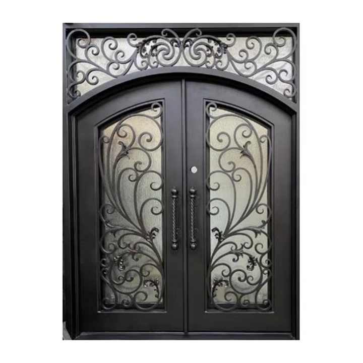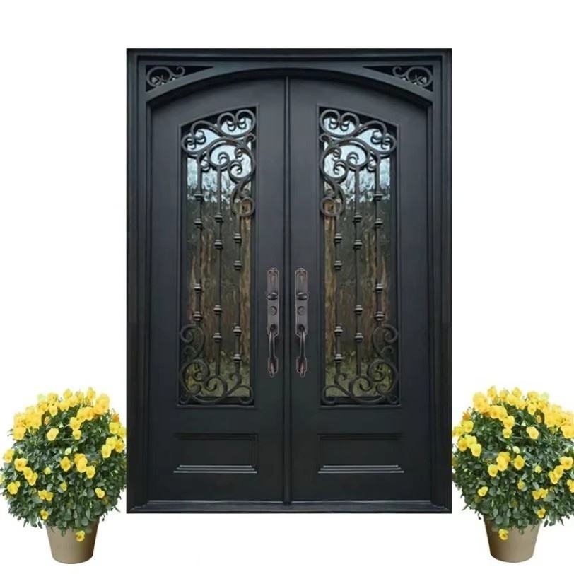 Puerta de Entrada de Villa de Estilo Europeo con Cerradura de Combinación de Hierro Forjado, Antirrobo, de Acero y Vidrio, Venta Directa de Fábrica