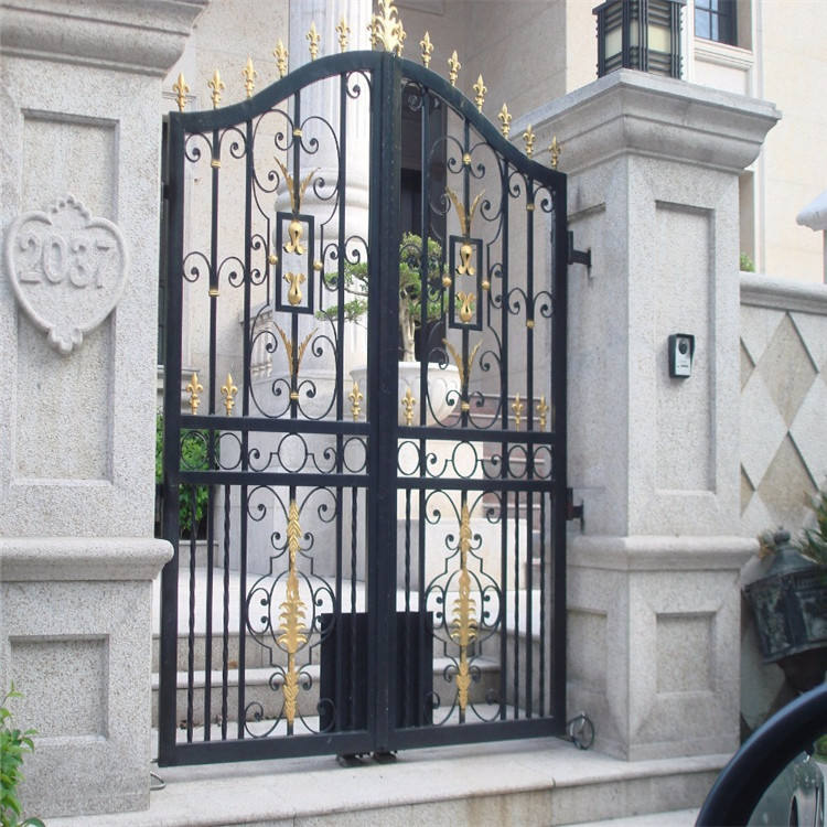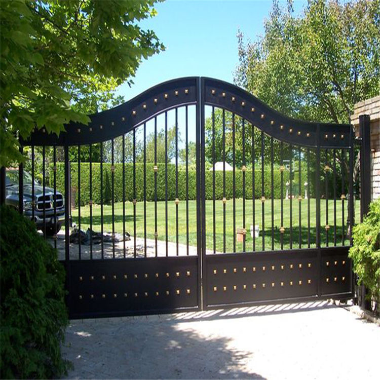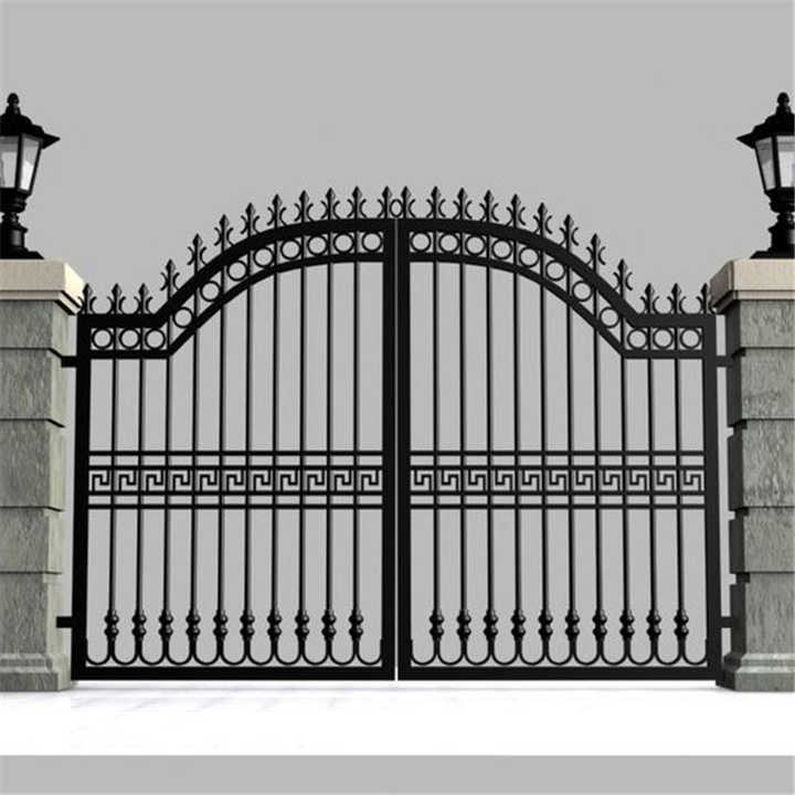 Venta directa de fábrica: portones batientes de acero galvanizado e hierro forjado para villa, garaje y muro perimetral; diseño de puertas exteriores de hierro