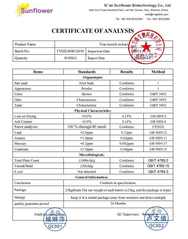 Venta directa de fábrica de alta calidad True Morels Black Morel Mushroom Morchella Esculenta Extracto