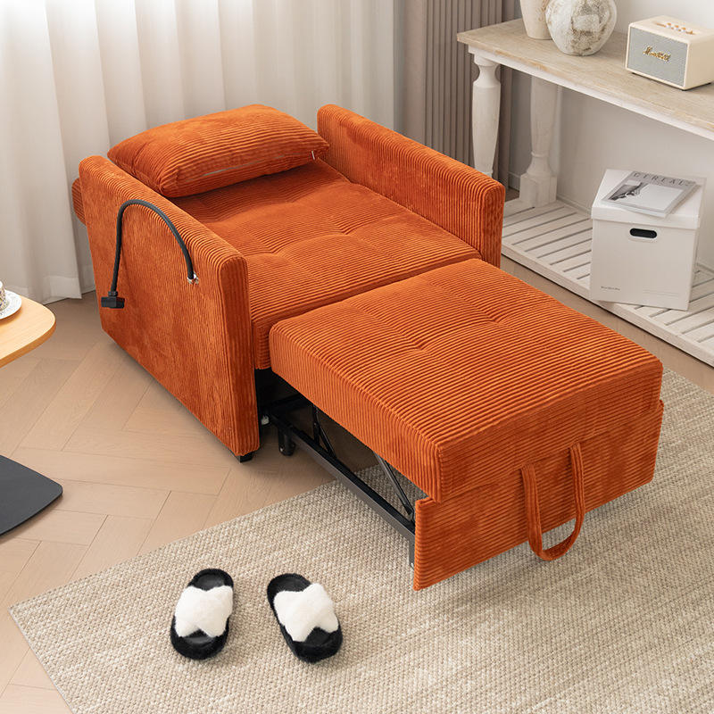 Sofá Cama de Pana Moderno de Venta Directa de Fábrica, Plegable, Reclinable, con Chaise Longue Oculta para Sala de Estar, Dormitorio o Apartamento