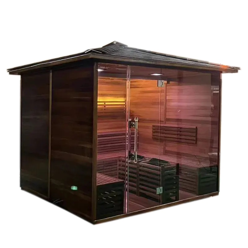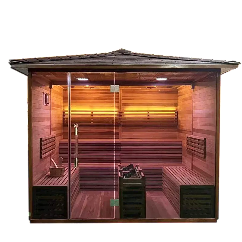 Venta directa de fábrica, sauna exterior de madera en forma de cubo, madera de cedro rojo, sauna tradicional negra