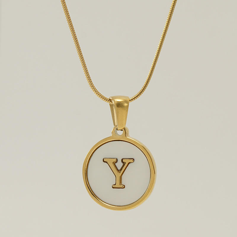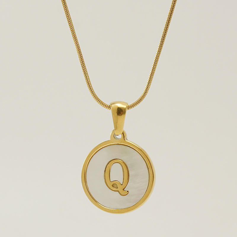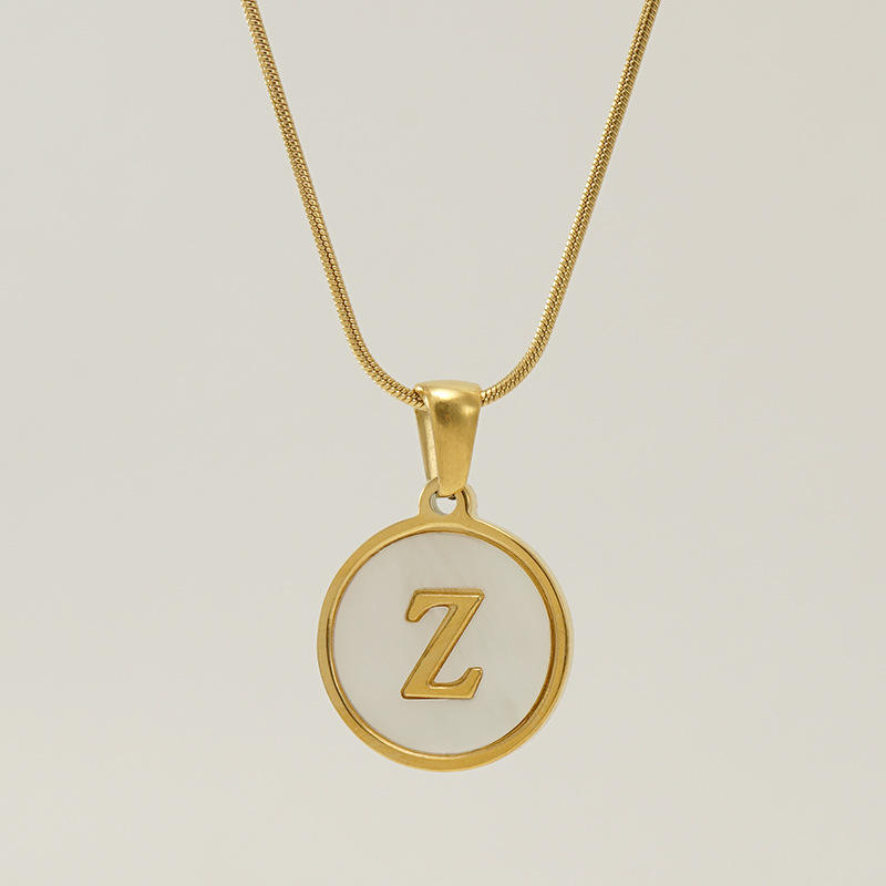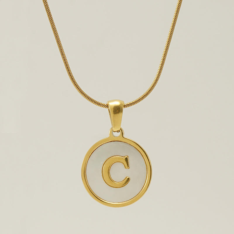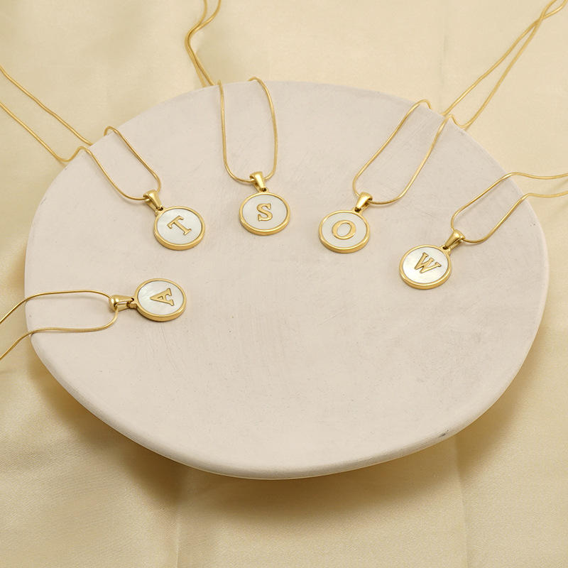 Venta Directa de Fábrica, Collar con Colgante de Acero Inoxidable, Cadena de Serpiente, Inicial de Concha Natural, 26 Letras, Chapado en Oro