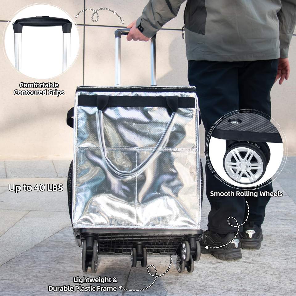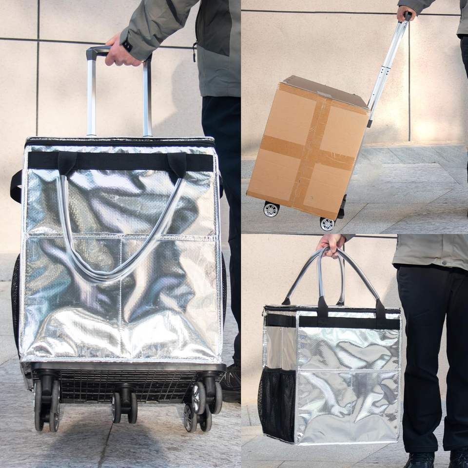 Bolsa de Compras Portátil con Ruedas, Cierre de Cremallera, Dos Asas, Plegable, de Poliéster, Venta Directa de Fábrica
