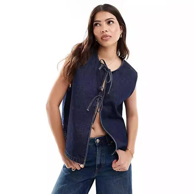 Ventas directas de fábrica para Amazon Chaleco de mezclilla sin mangas informal de moda transfronteriza europea americana para mujer Ropa exterior de punto