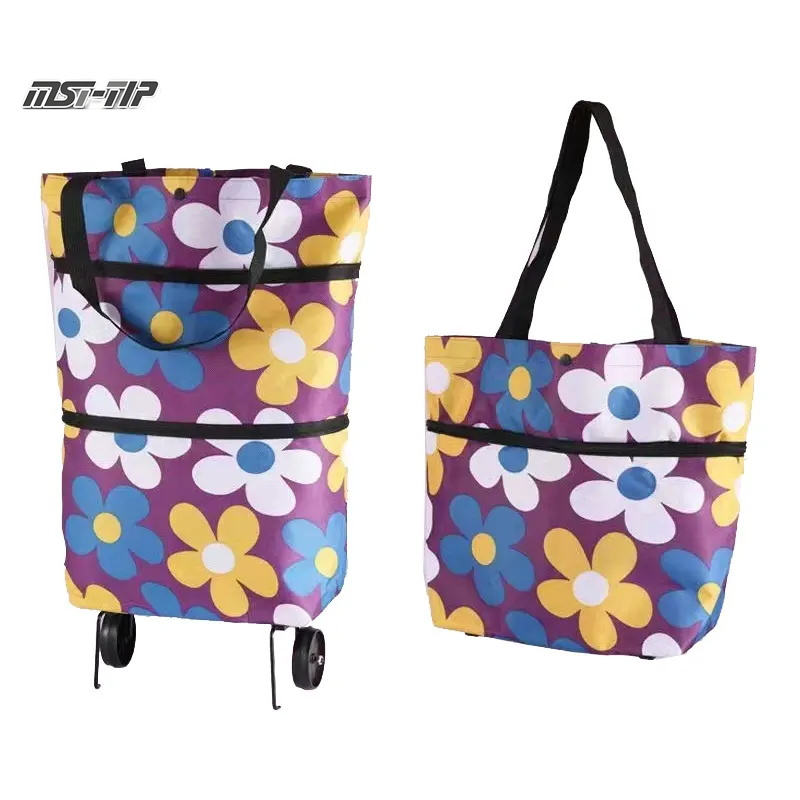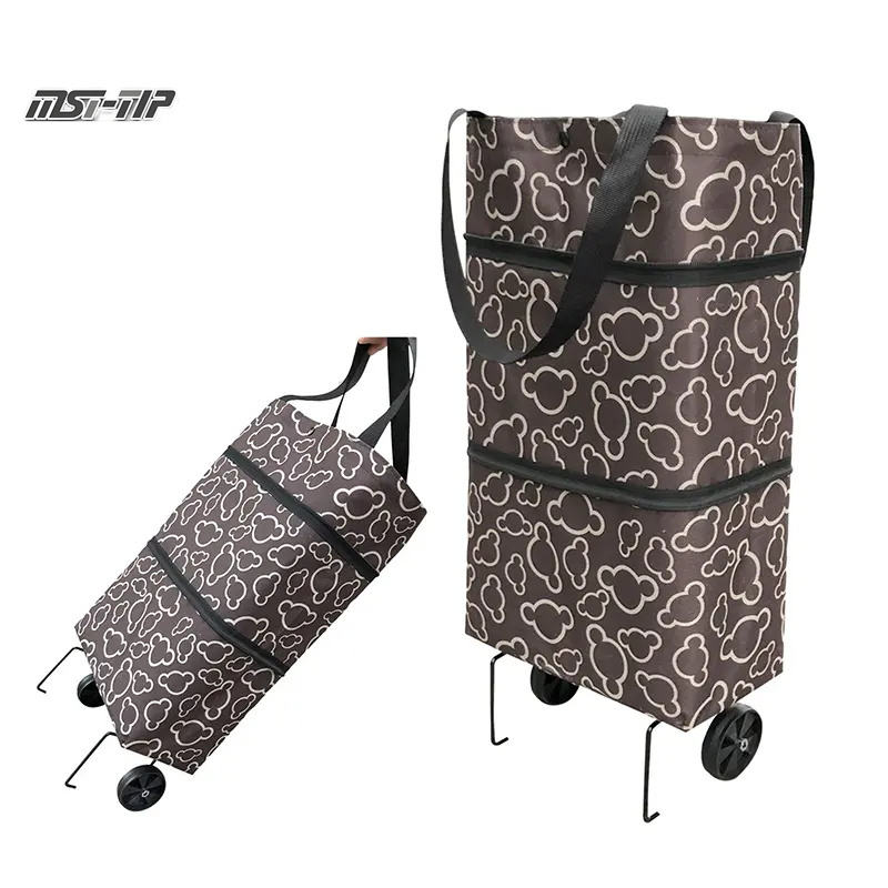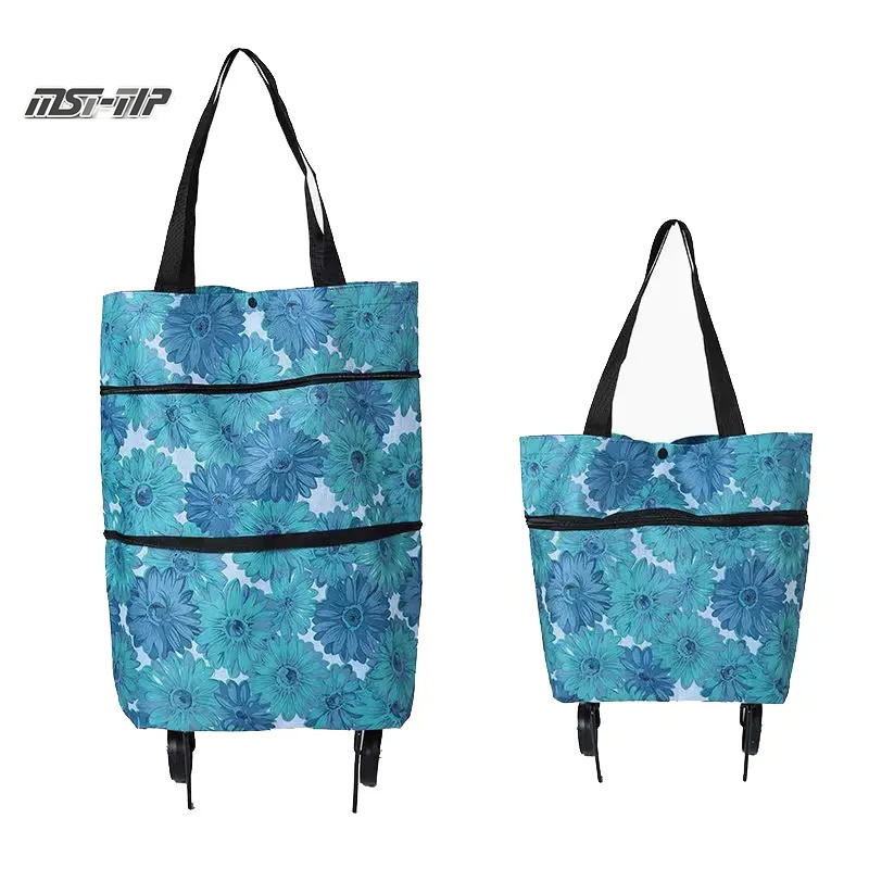 Venta directa de fábrica, bolsa de carrito de supermercado plegable portátil, bolsa de carrito de compras fácil de llevar con ruedas