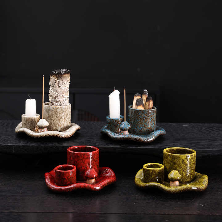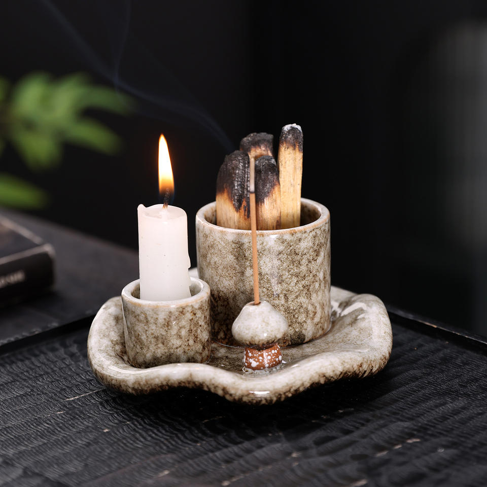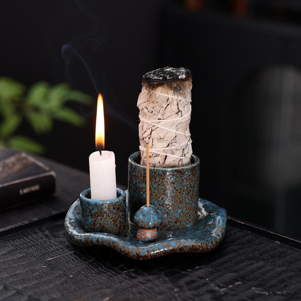 Quemador de Incienso de Cerámica 3 en 1, Venta Directa de Fábrica, para Salvia, Palo Santo, Varillas de Incienso, Té, Sándalo, Portavelas, Cuenco para Incienso