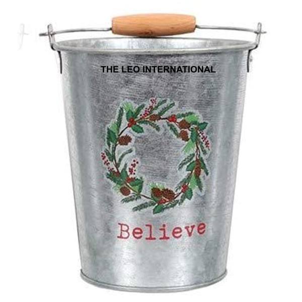 Venta Directa de Fábrica: Cubo de Metal Galvanizado Rojo Simple para el Hogar, Juego de Regalo de Navidad, Cubo para Herramientas, Contenedor