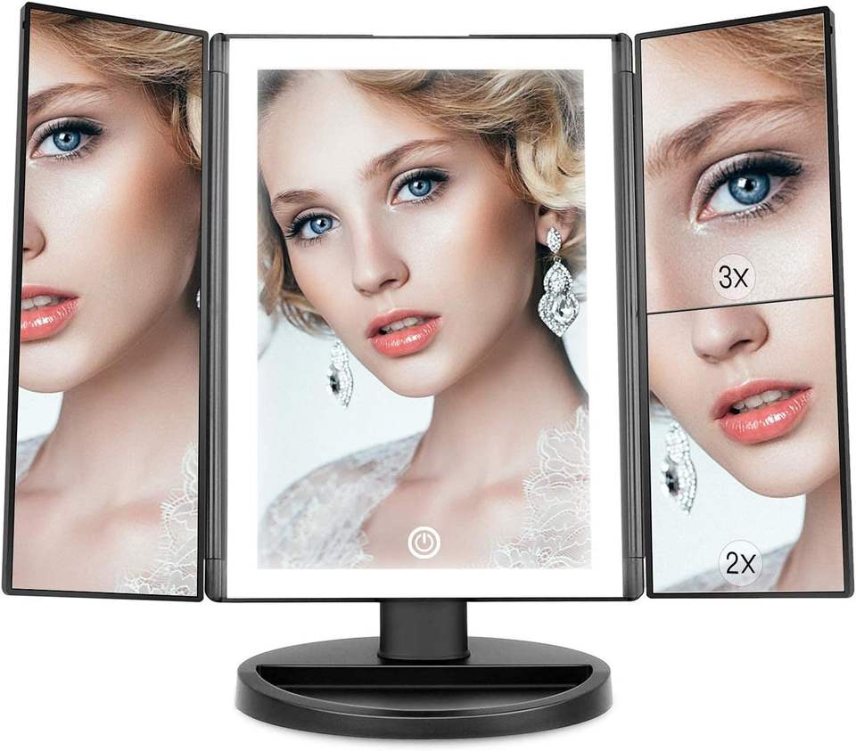 Venta Directa de Fábrica, Nuevo Producto, Barra de Luz LED, Espejo de Maquillaje Tríptico de Plástico con Luces de Aumento 2/3/10X