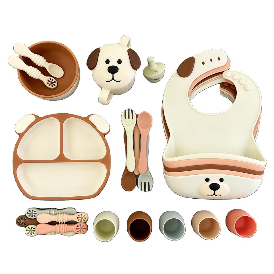 Set de Alimentación de Silicona para Bebé, Diseño de Dibujos Animados, Ecológico, Libre de BPA, Kit de Comer para Niños Pequeños, Babero Impermeable con Succión, Marca Naike