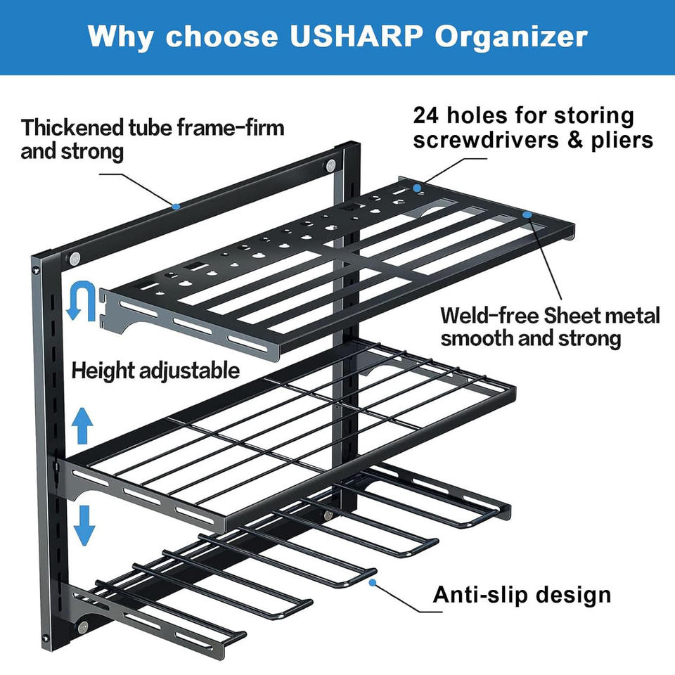 Directo de fábrica Diseño de ranura Altura ajustable Montado en la pared Garaje Taladro Rack Destornilladores Rack