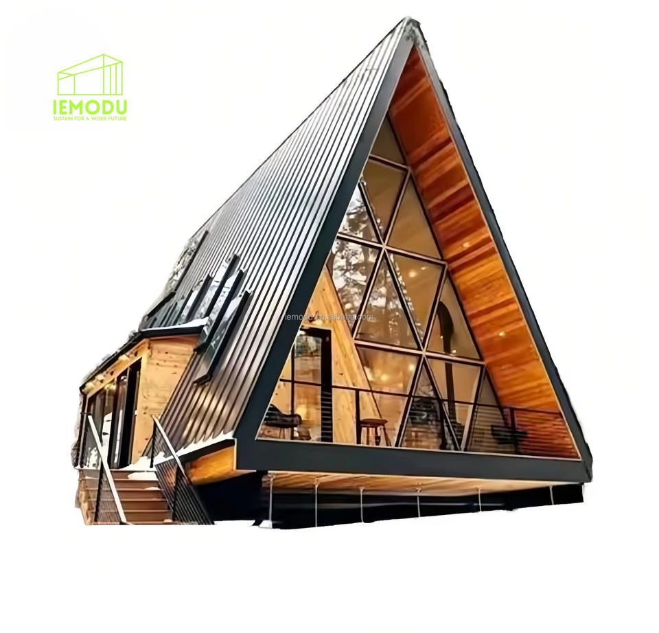 Casa prefabricada pequeña de madera maciza directa de fábrica, diseño triangular para Camping, casa de familia y mejora del paisaje, red roja