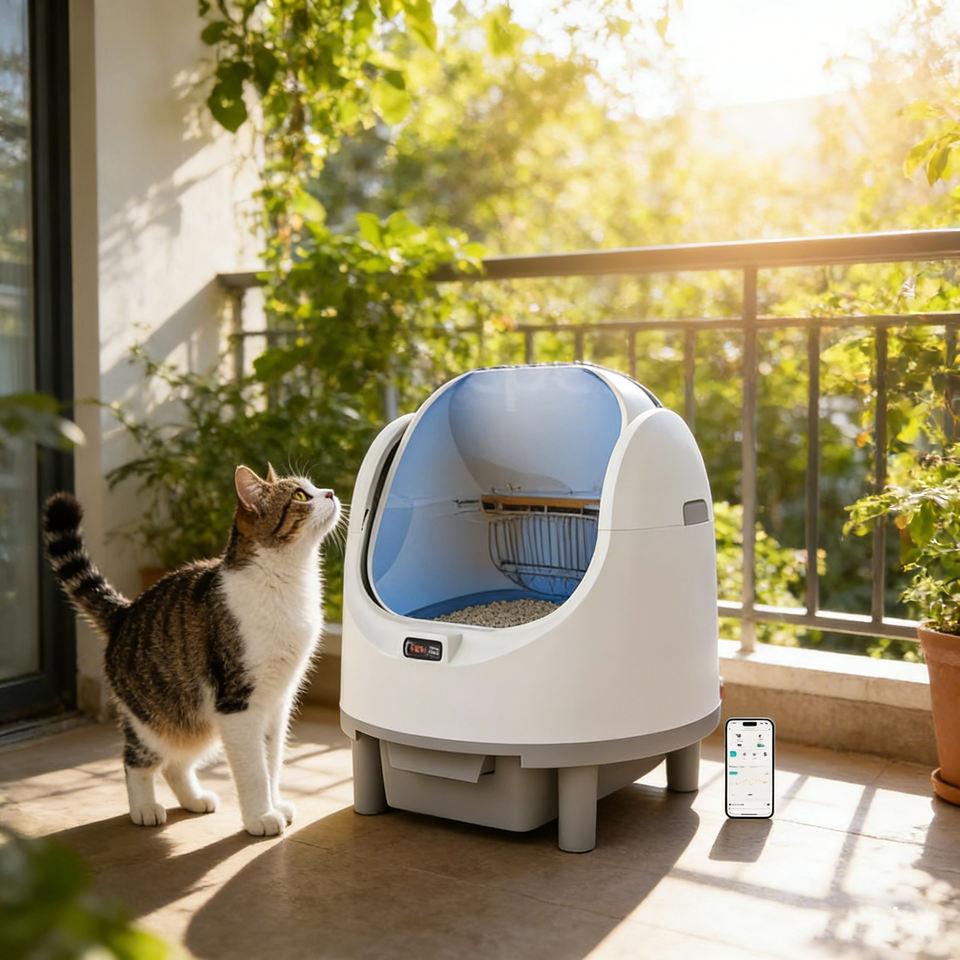 Caja de arena inteligente para gatos, directa de fábrica, con control por aplicación WiFi, a prueba de salpicaduras, cerrada, segura y duradera.