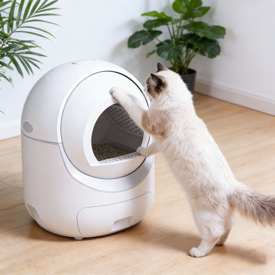 Caja de arena inteligente para gatos, directa de fábrica, con control por aplicación WiFi, cerrada, a prueba de salpicaduras, segura y duradera.