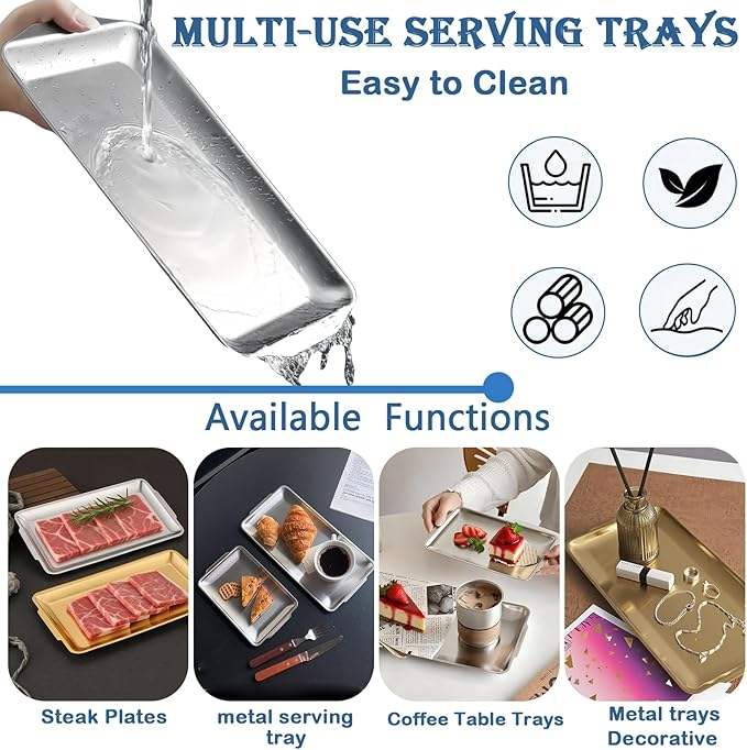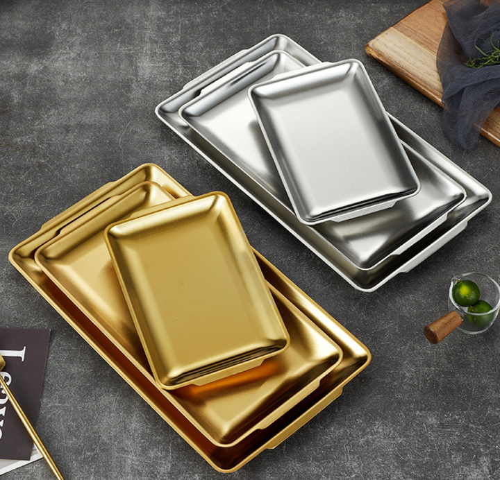 Bandejas de Acero Inoxidable Directas de Fábrica, Bandeja Dorada y Plateada para Servir en el Hogar, Restaurante, Barbacoa, Catering, Platos para Presentación de Alimentos