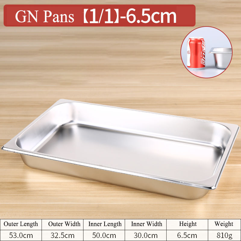 Acero inoxidable 201 Material GN Sartenes 1/1 Tamaño 530*325*65mm