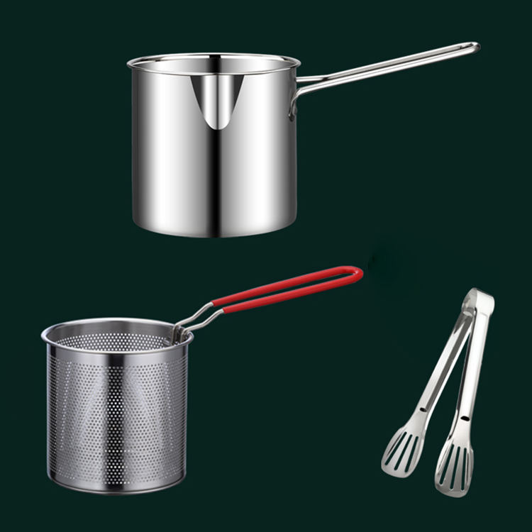 Juego de Ollas de Acero Inoxidable, Olla Redonda para Freír, Sartén Profunda con Cesta de Filtro, Directo de Fábrica