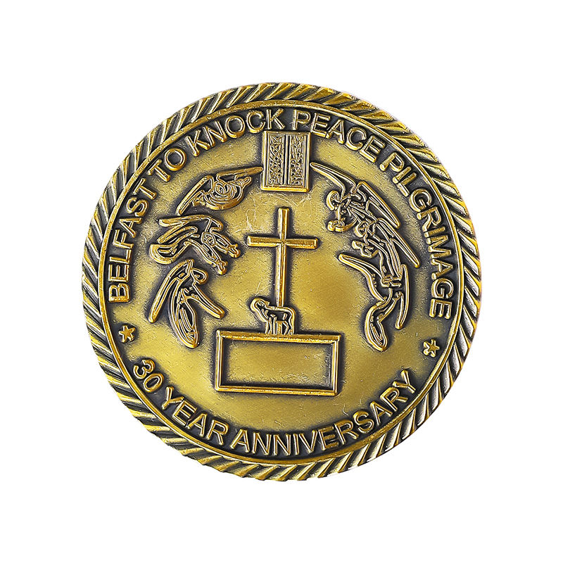 Insignias de Regalo Conmemorativas Personalizadas de Suministro Directo de Fábrica, Insignias de Metal con Acabado de Arena de Bronce Antiguo de Alta Calidad