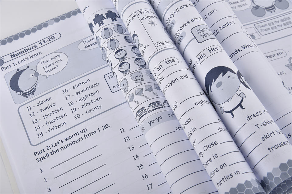 Suministro directo de fábrica, folleto educativo impreso personalizado para niños, costura de sillín de laminación de PP de brillo perfecto