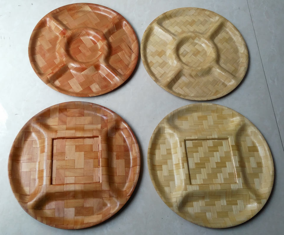 Suministro directo de fábrica Ecológico 12 ''Bandeja de 5 secciones para nueces Ensalada de frutas Tazón/plato artesanal natural ecológico para servir