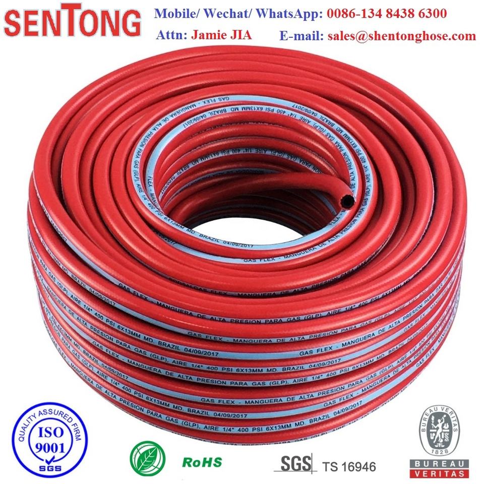 Suministro directo de fábrica Venta caliente MANGUERA DE GAS DE PVC 1/4 "Rojo con Blue Sky Stripe en 50 metros por rollo para el mercado de Perú y Bolivia