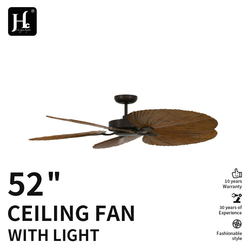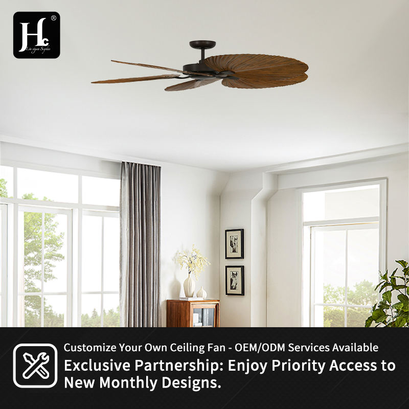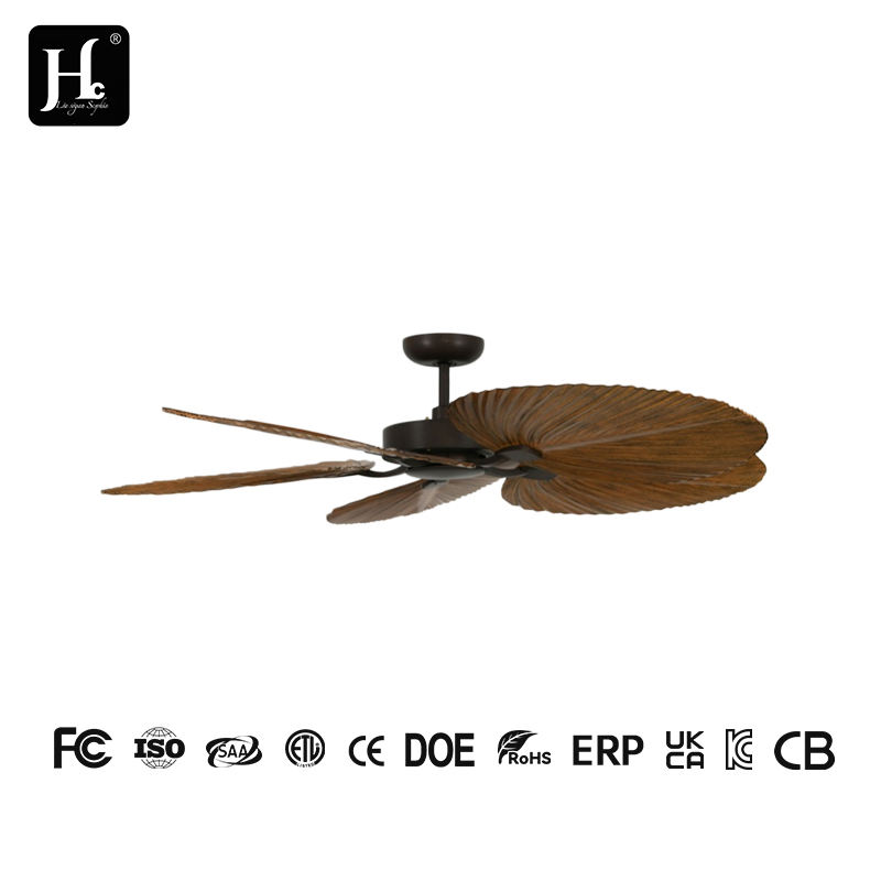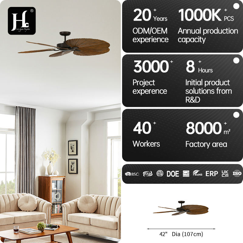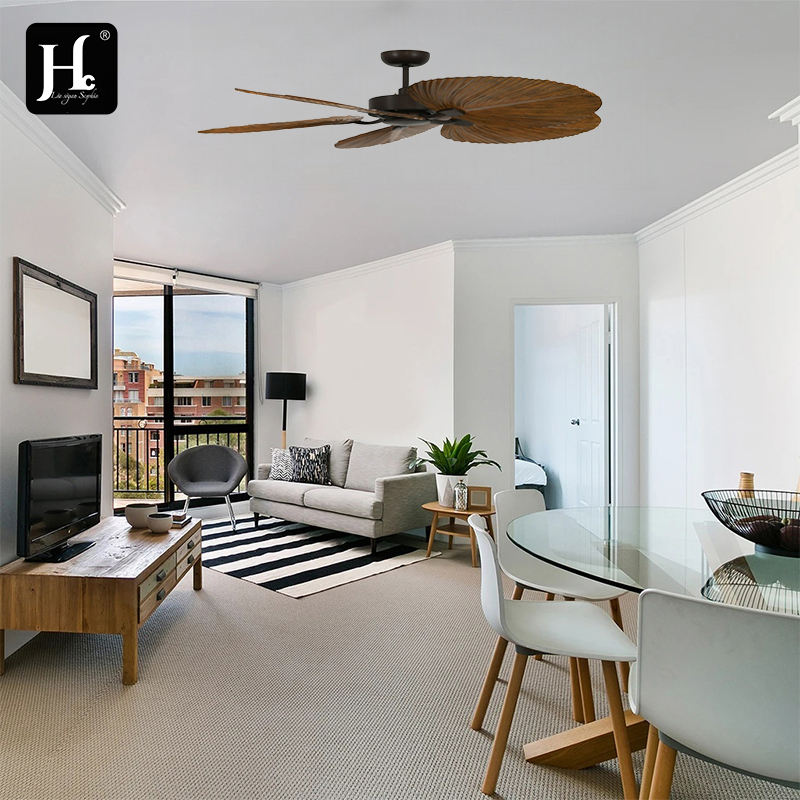 Ventilador de Techo Reversible con Motor DC Sin Luz y Control Remoto, Diseño Tropical, Directo de Fábrica, para Dormitorio y Sala de Estar