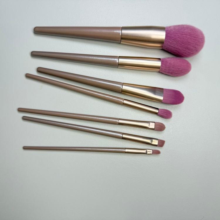 Brochas de Maquillaje de Pelo Sintético Ultrasuave con Mango de Madera y Virola de Aluminio, Suministro al por Mayor, 7 Piezas