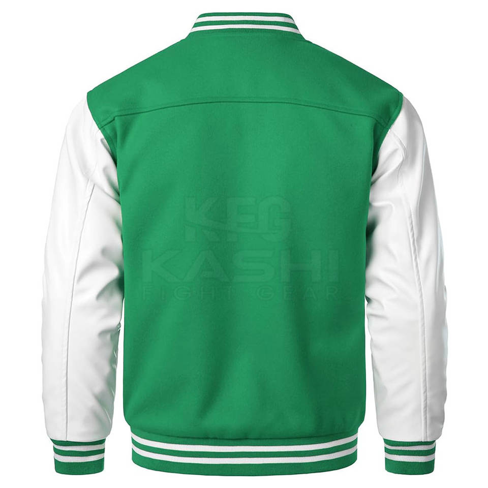 Chaqueta Varsity de Invierno Directo de Fábrica con Mangas de Cuero, Cuello Alto y Logotipo Frontal - Ropa Casual Moderna para Hombre, Ecológica y Transpirable