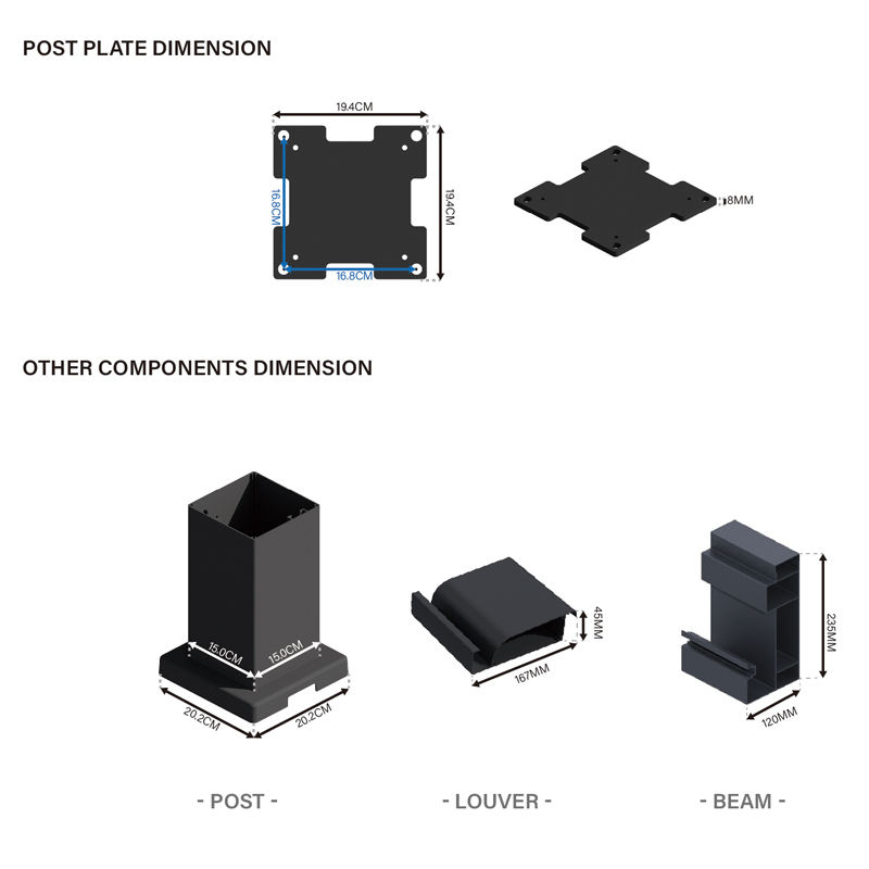 Fácil de ensamblar, Portátil, Respetuoso del medio ambiente, A prueba de viento, Ecológico, Durable, Resistente a la intemperie, Protección solar contra la lluvia, De pie, Eléctrico, Resistente a la lluvia, BioclimáticaCaracterísticas