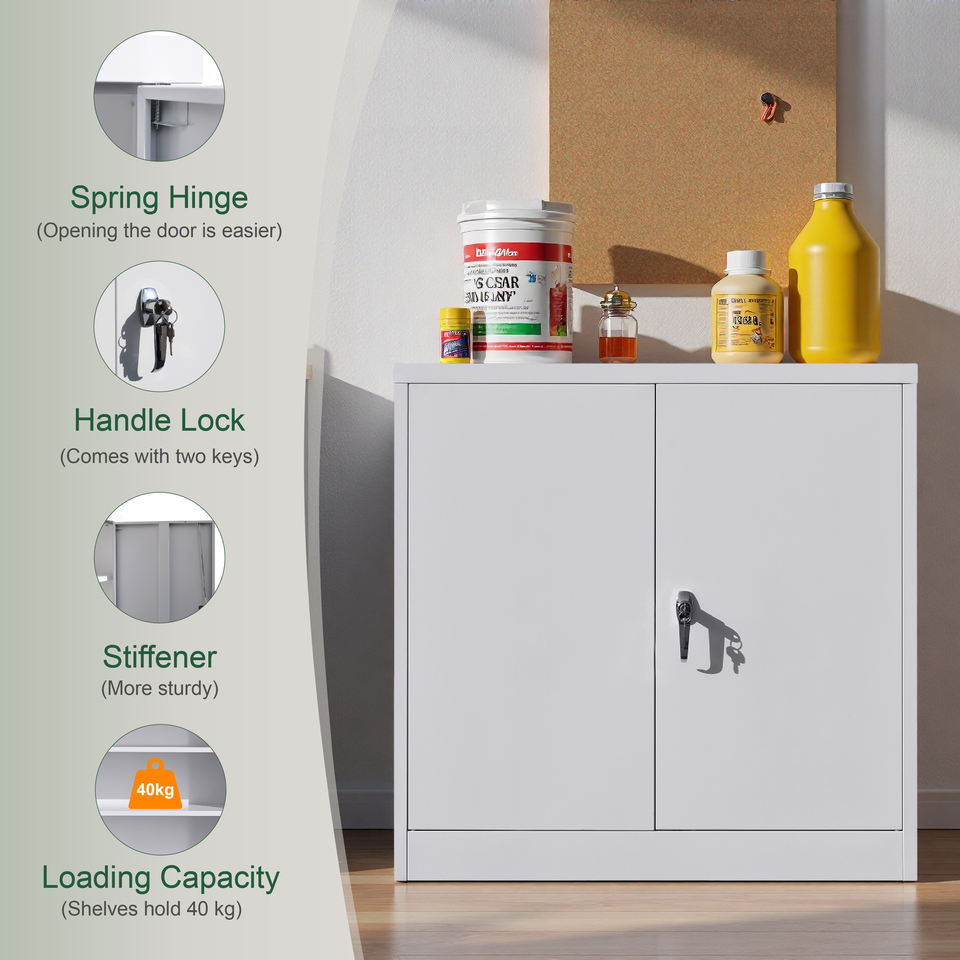 Archivador Blanco de 2 Puertas Directo de Fábrica, 2 Estantes Ajustables, Unidad de Almacenamiento Pequeña, Precio al por Mayor, Muebles de Oficina