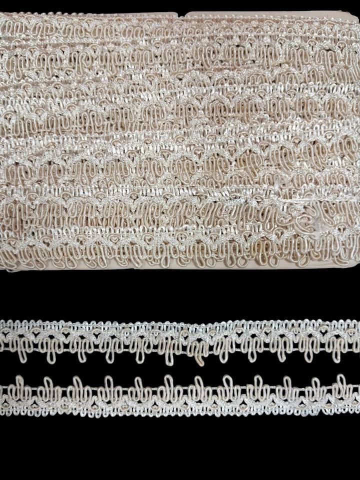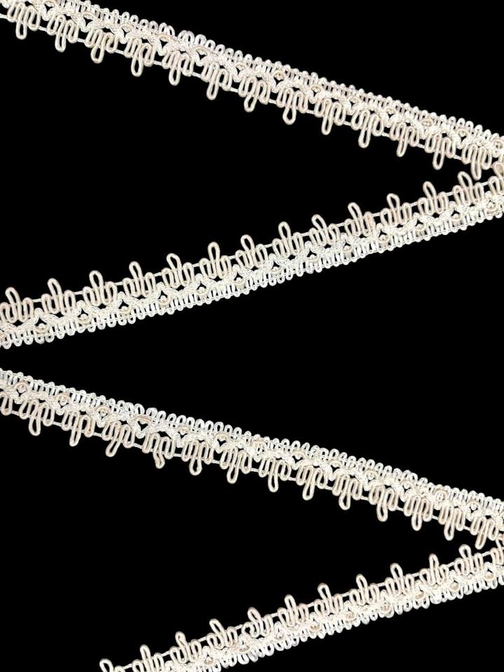 Decorative loop edge design, Lightweight and flexible construction, Durable nylon thread material, Easy to sew onto different fabrics, Suitable for fashion and craft applicationsCaracterística