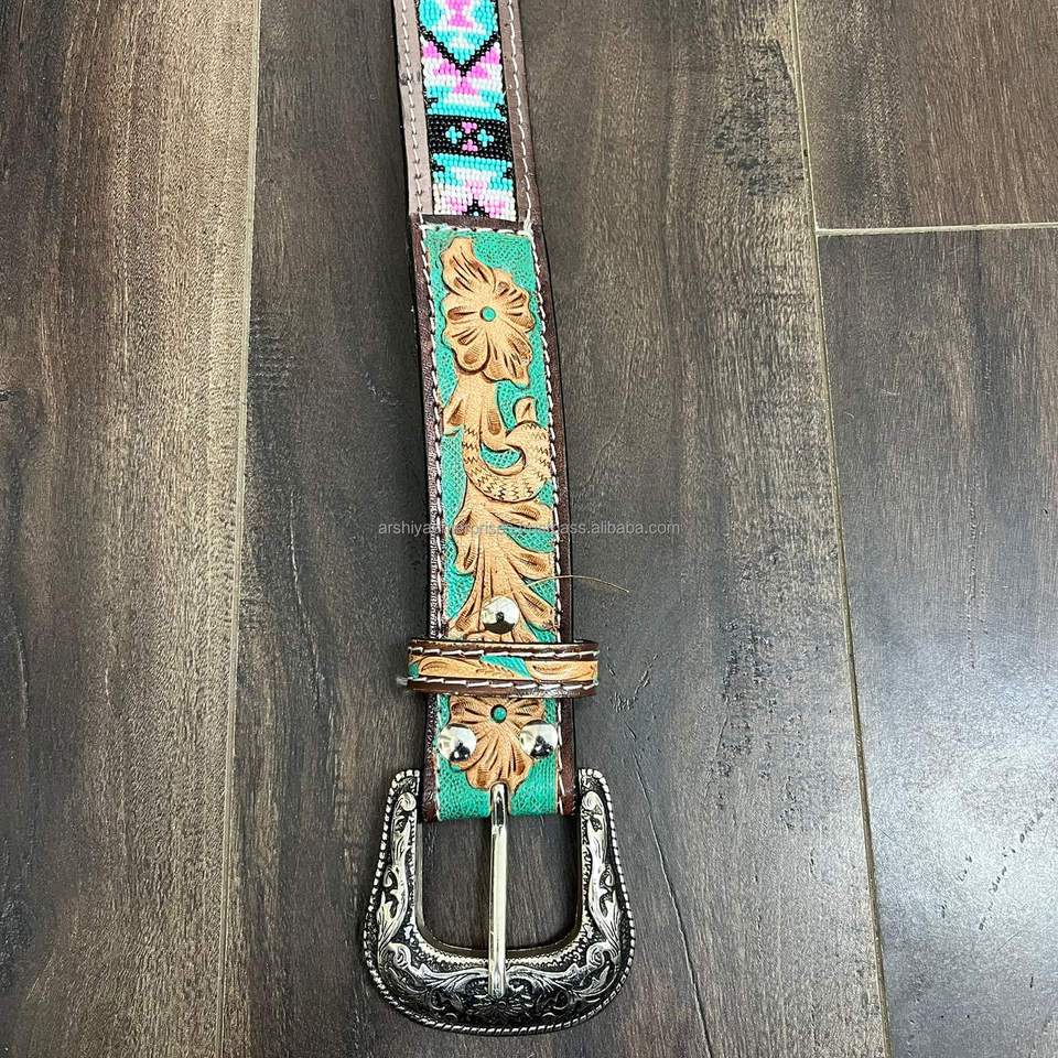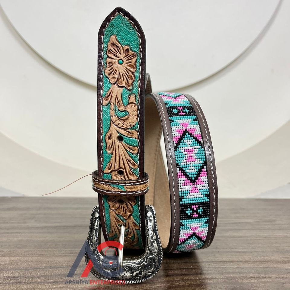 Product name:Hand Tooled Leather Beaded Pin Buckle Belt