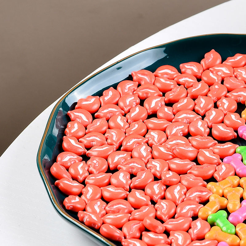 Labios de caramelo comestible moldeados, de fábrica, venta directa al por mayor, en botella de 85g, para el Día de San Valentín