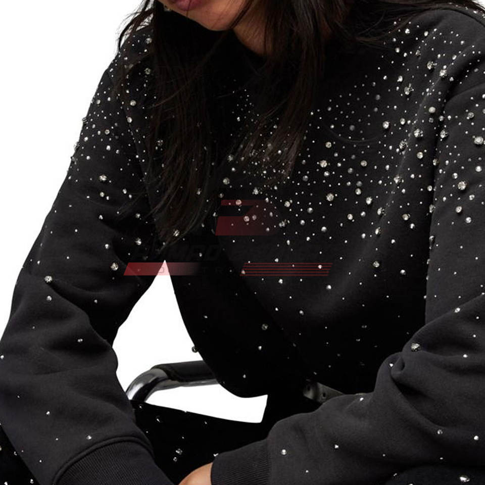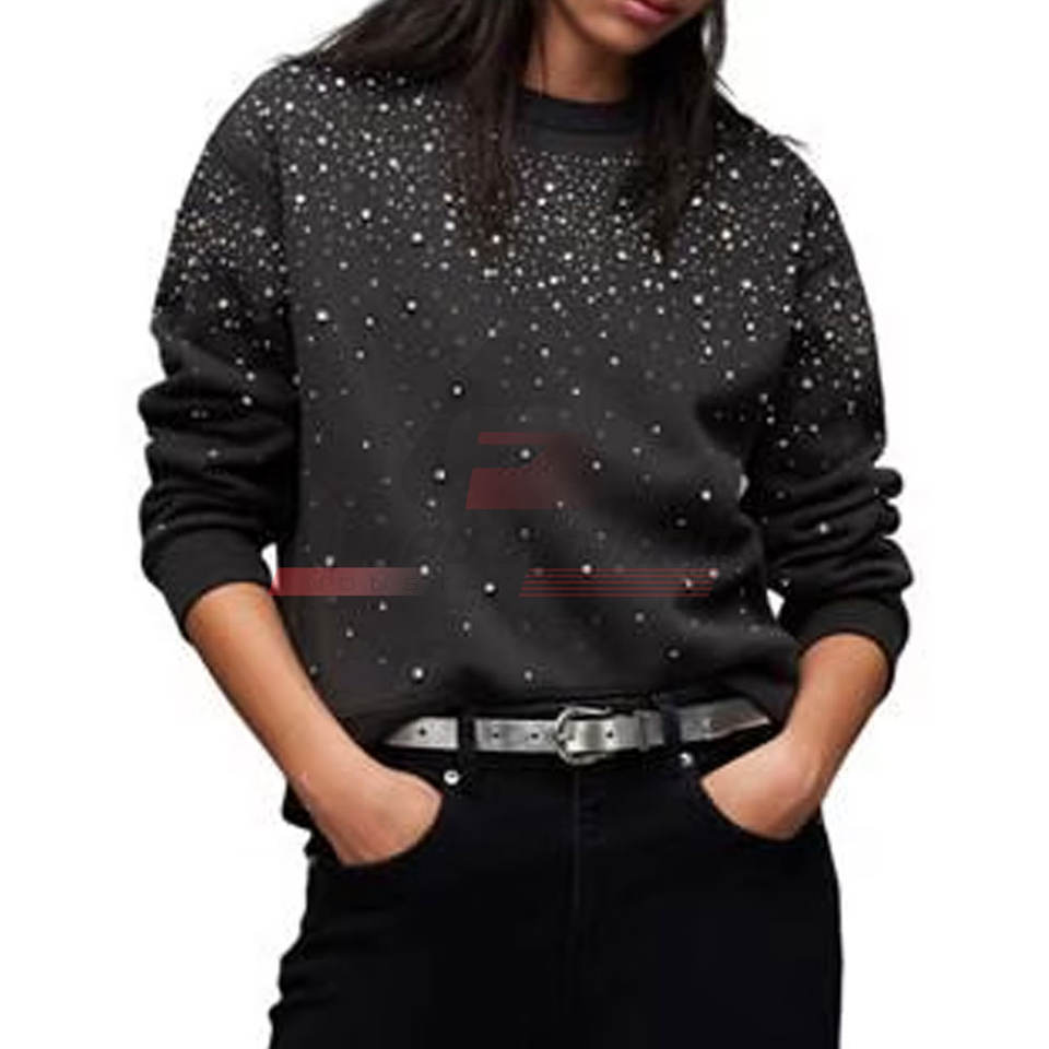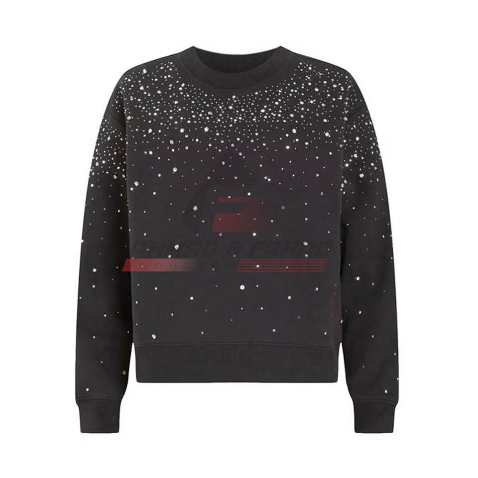 Directo de fábrica, precio al por mayor, sudadera con diamantes de imitación para mujer, MOQ bajo, mejor precio, sudadera con diamantes de imitación para mujer, venta en línea
