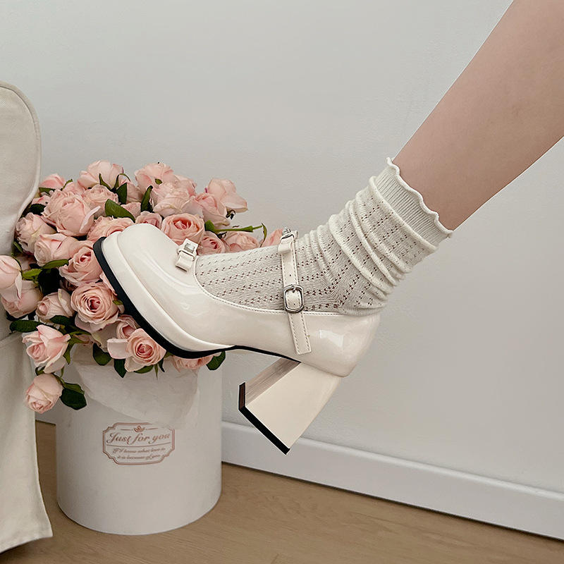Tacones Gruesos Cómodos Color Vino Tinto Directo de Fábrica - Nuevos Zapatos de Una Sola Correa para Mujer
