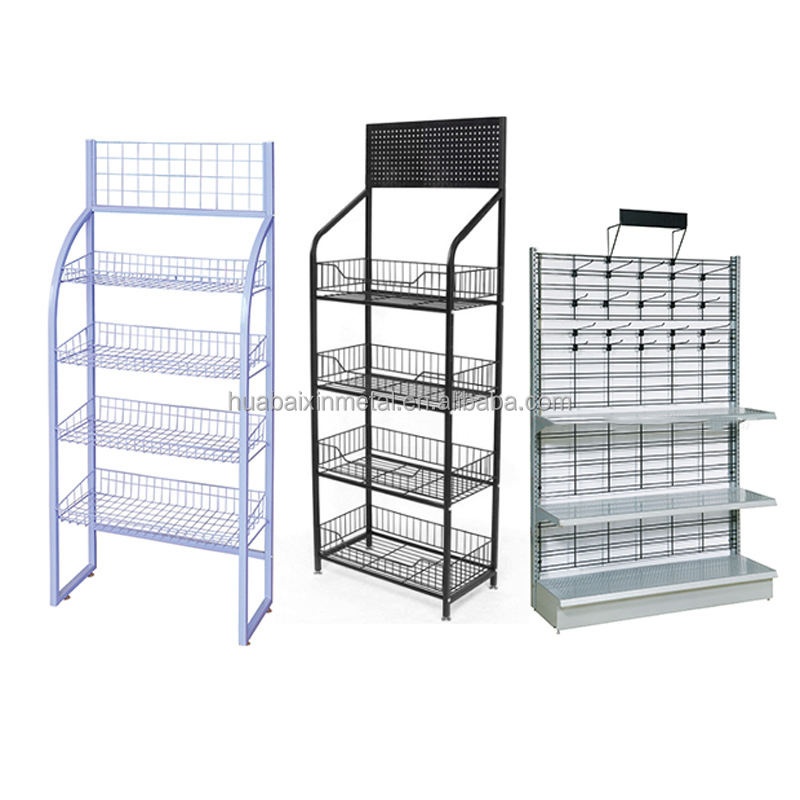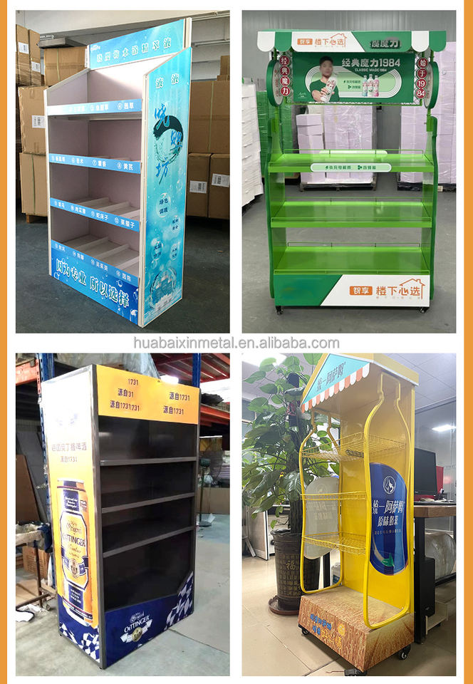 Estantes de exhibición de hierro forjado directos de fábrica Estantes de bebidas de metal convenientes para supermercados Tiendas de conveniencia Comisarios