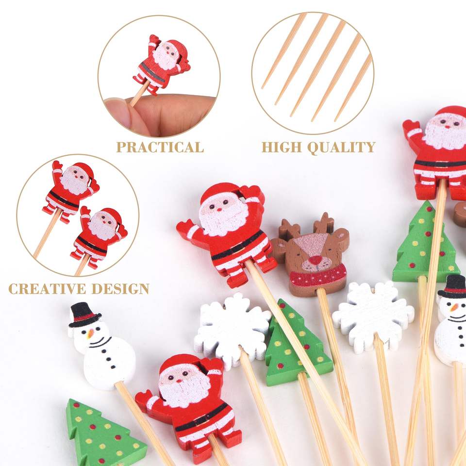 Brochetas Decorativas de Bambú para Cócteles, Frutas, Desechables, para Fiestas, Cumpleaños, Navidad, Directamente de Fábrica