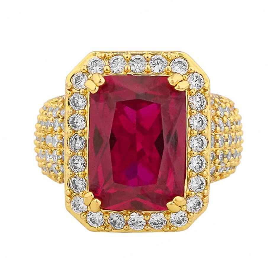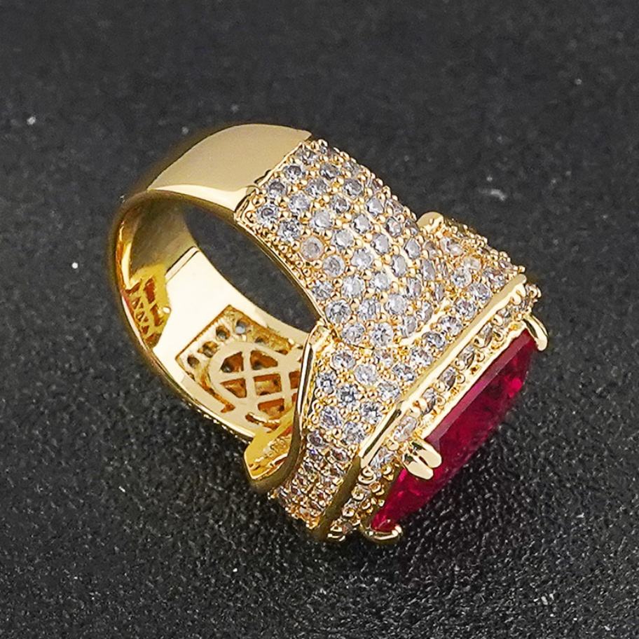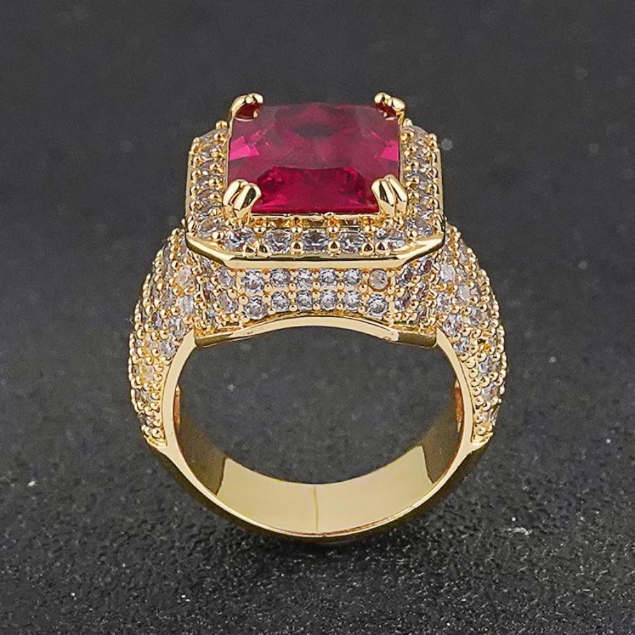 Anillos de Latón Chapados en Oro con Circonita Cúbica Roja y Rubíes, Hechos a Mano Directamente de Fábrica, para Hombre, Estilo Hip Hop