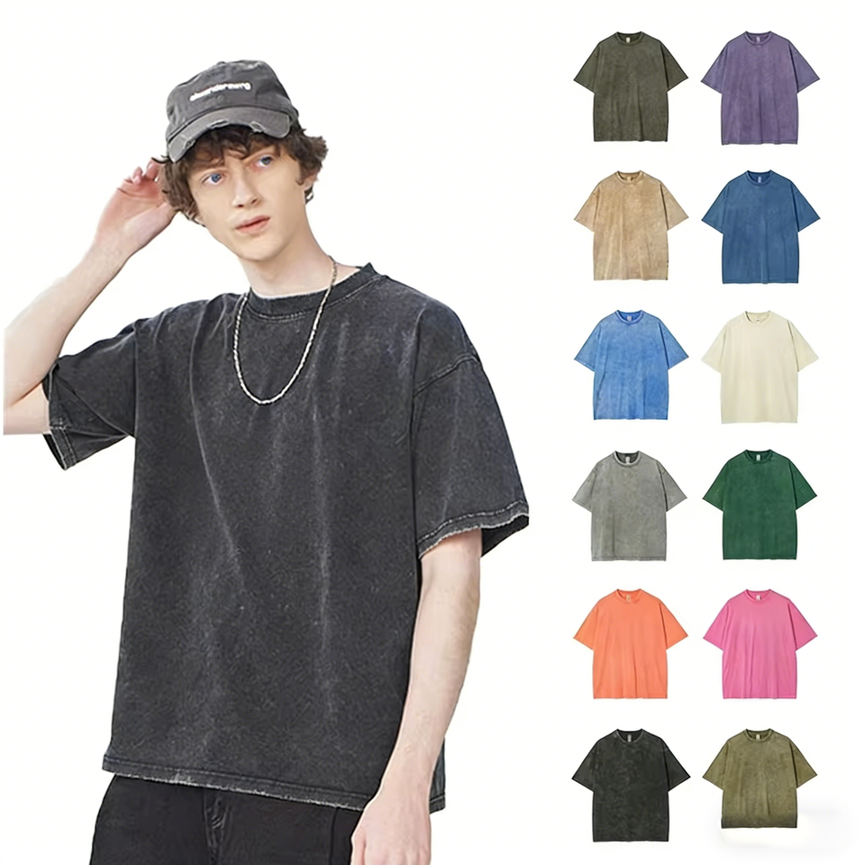 Camiseta Vintage Lavada de Alta Calidad Directo de Fábrica, con Logotipo Personalizado, para Hombre y Mujer, Informal, 100% Algodón Tejido, Estilo Retro Desgastado
