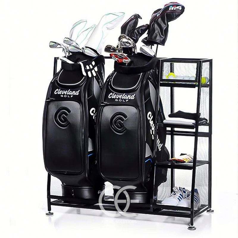 Directamente de fábrica OEM ODM Diseño de tienda de golf moderno Gabinete de pared de madera de golf grande negro Estante de exhibición de palos de golf hecho a medida