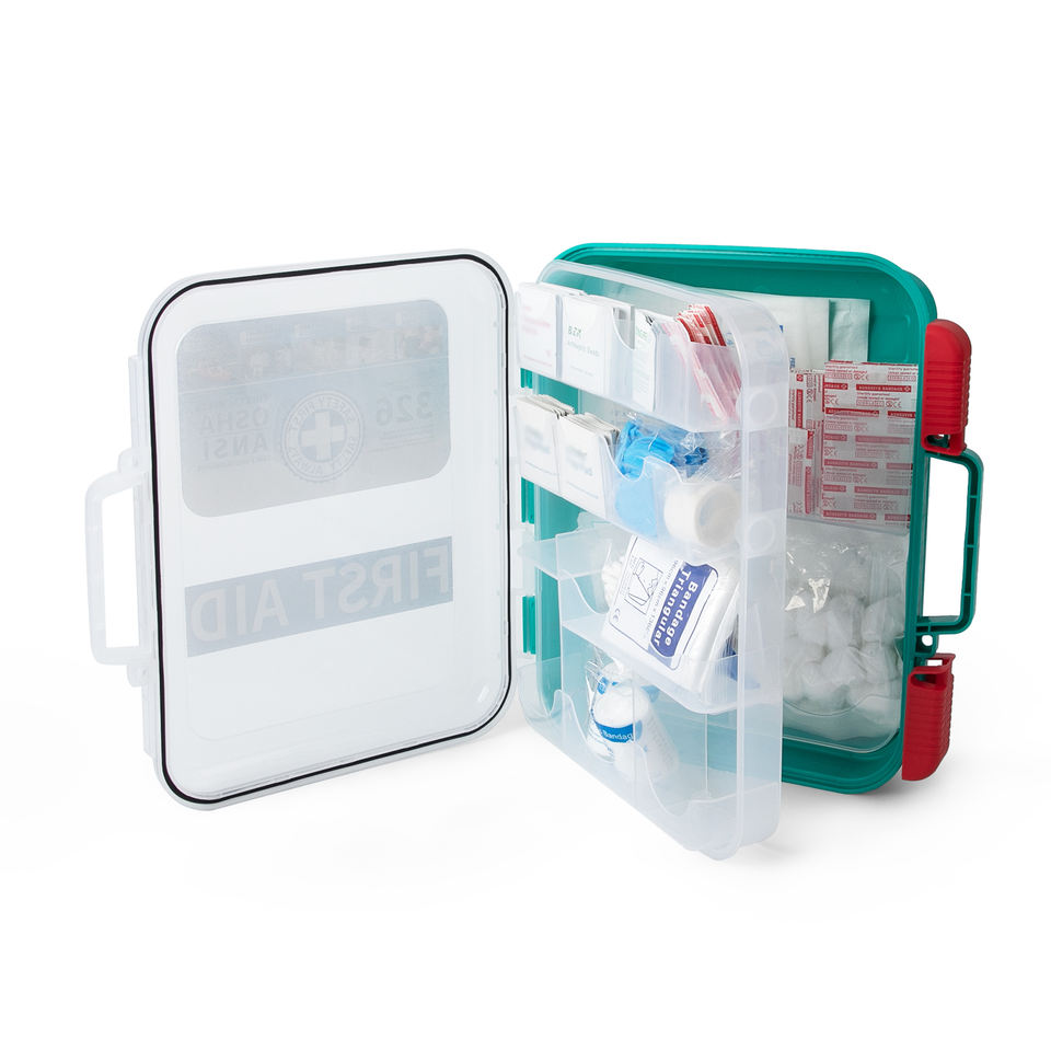 Botiquín de primeros auxilios grande de plástico directamente de fábrica con bolsa de primeros auxilios de carcasa dura portátil de viaje en coche de dos manijas para restaurante