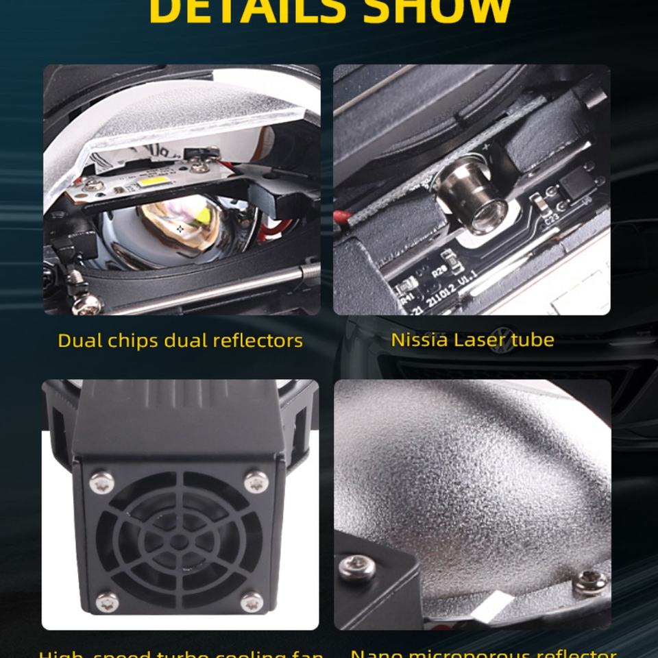 Light source:led chips, reflective laser