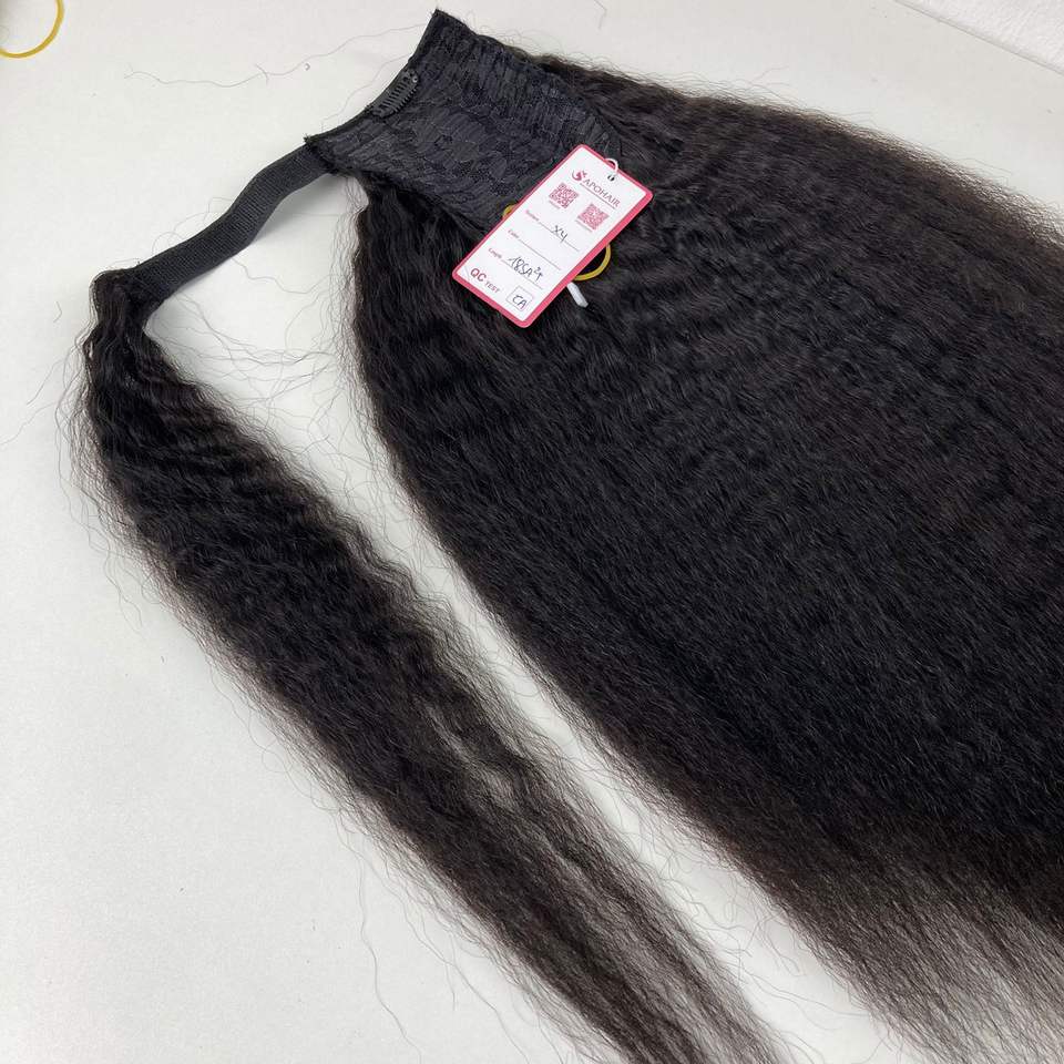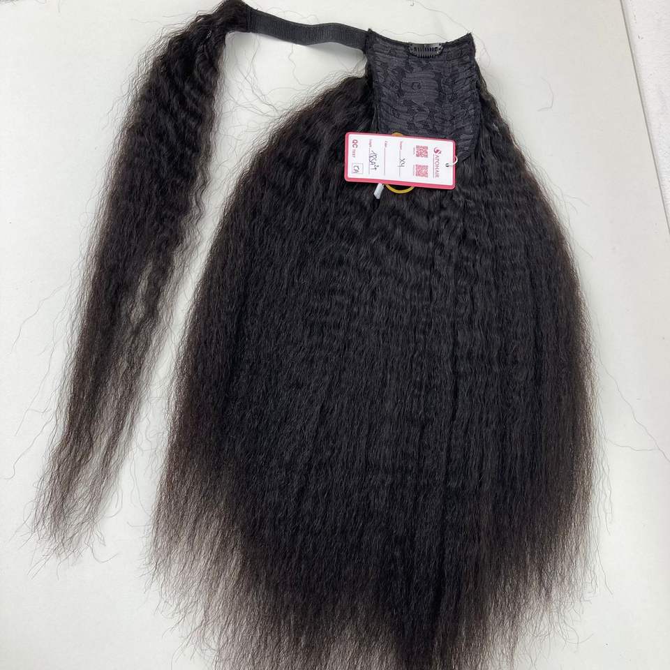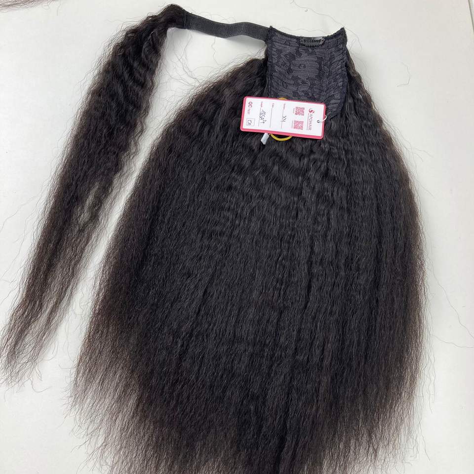 Extensión de cabello Remy ruso dibujado doble de fábrica, cola de caballo recta ondulada Natural con opciones coloridas