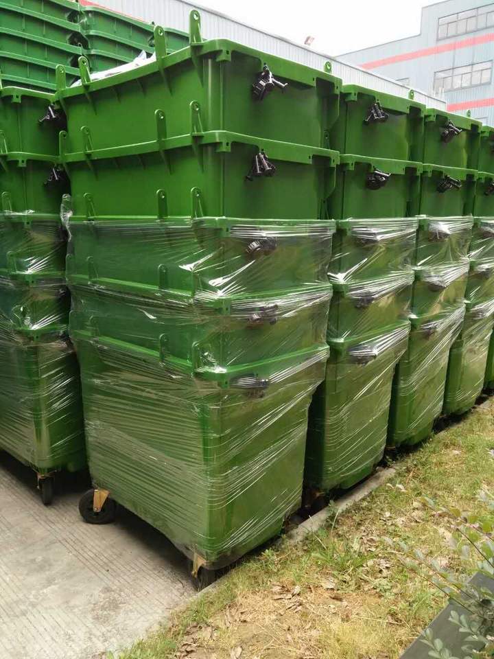 Cubo de basura de plástico de 660 litros, contenedor de basura de plástico duradero con tapa, para publicidad y reciclaje de fábrica