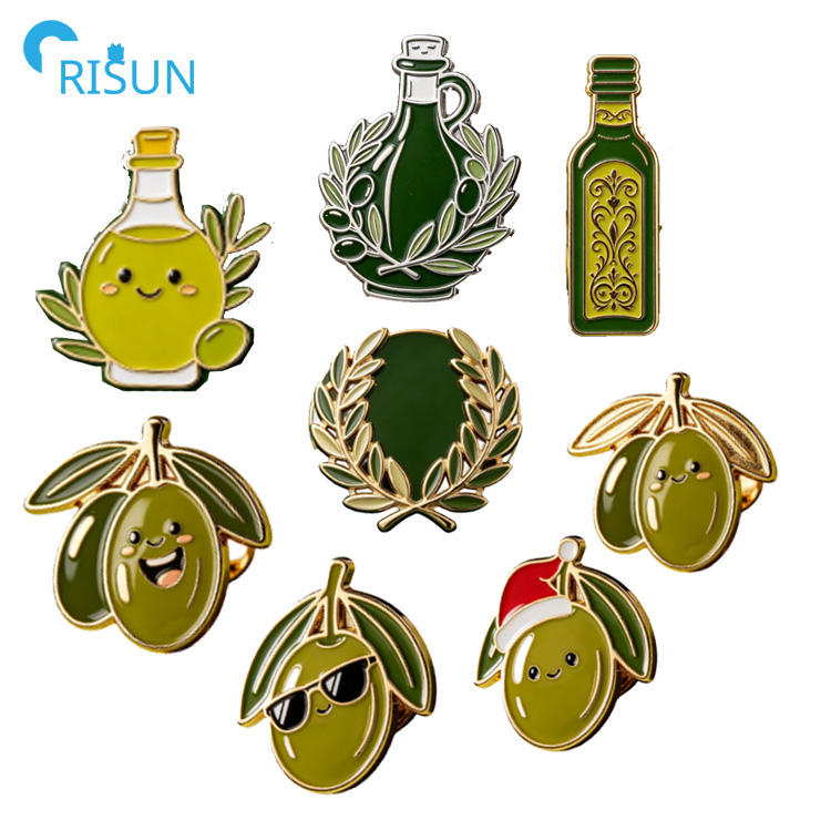Factory Enamel Badge Pin Olive Tree Custom Metal Logo Olive Branches Oil Enamel Pin Brooch Cartoon Olive You Zaytoun Lapel Pin