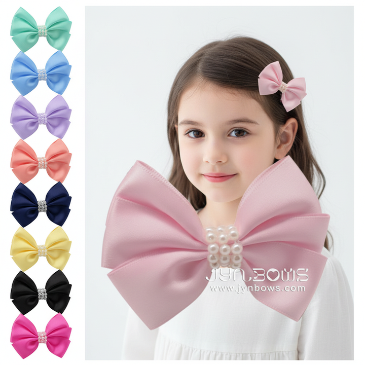 Accesorios para el cabello impresos hechos a mano de estilo europeo de fábrica, lazo de cinta de satén con pinza de pelo de perla para decoración del cabello
