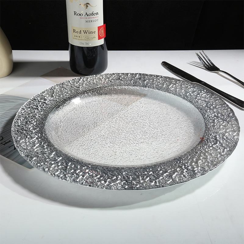 Platos de Cristal Plateados para Decoración de Eventos y Bodas, Alquiler Directo de Fábrica