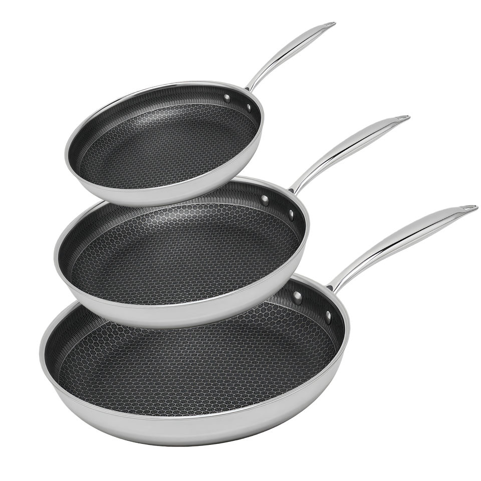 Juego de 3 Sartenes Antiadherentes de Fábrica Libres de PFOA, 8/10/12 Pulgadas, con Revestimiento Cerámico de Panal y Acero Inoxidable de Triple Capa