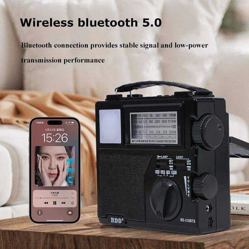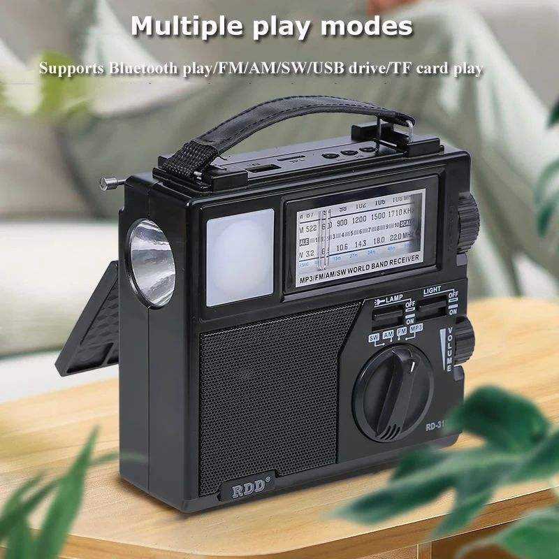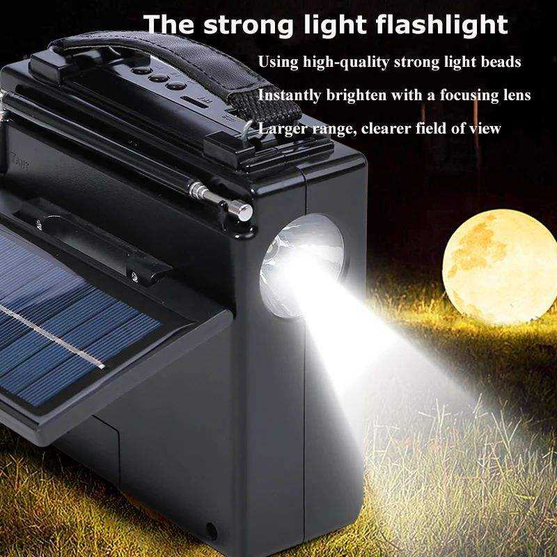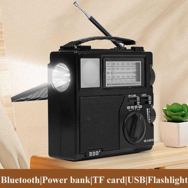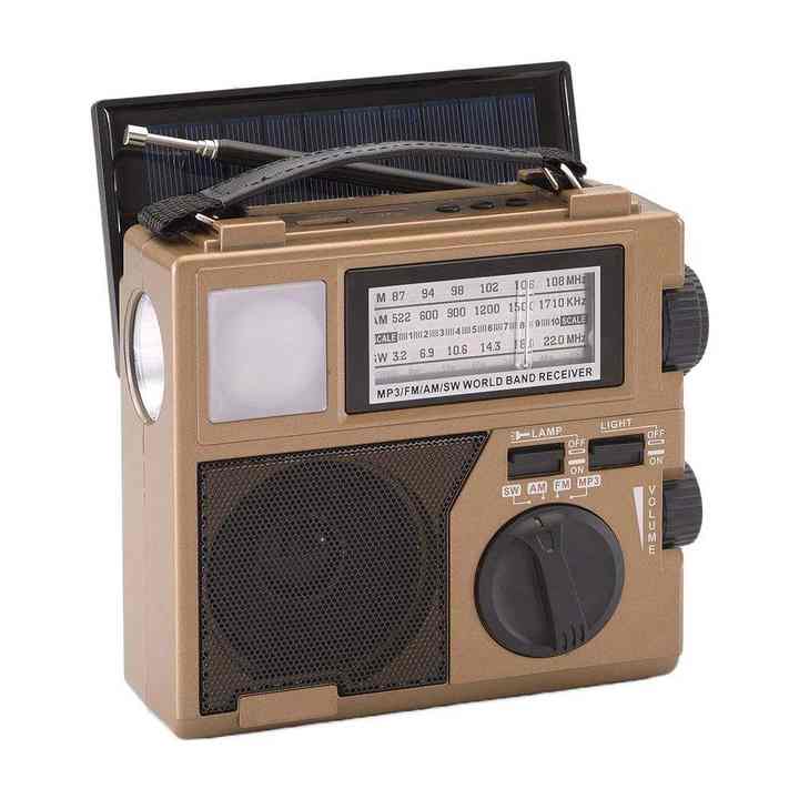 Radio Solar Portátil AM FM SW con Manivela, 65dB SNR, Linterna, Recargable, Alimentación AC/DC, para Campismo al Aire Libre