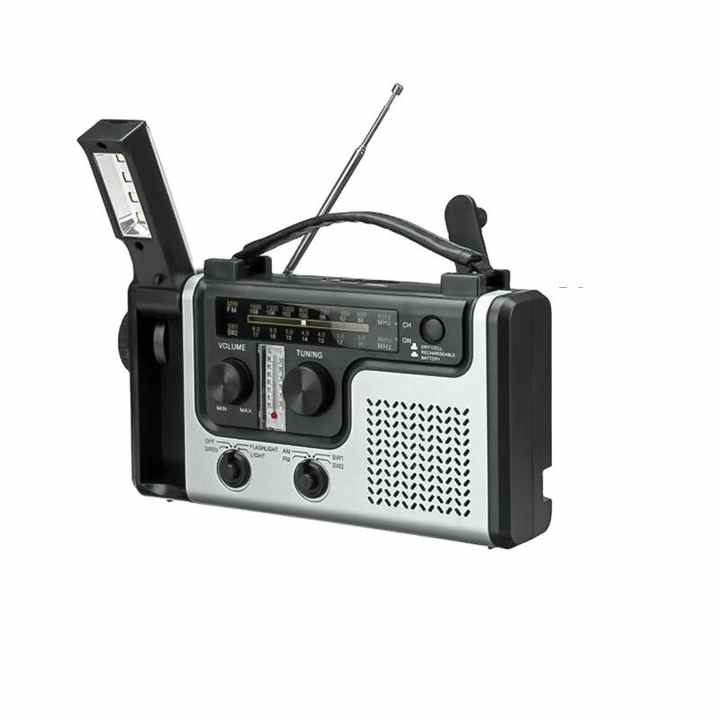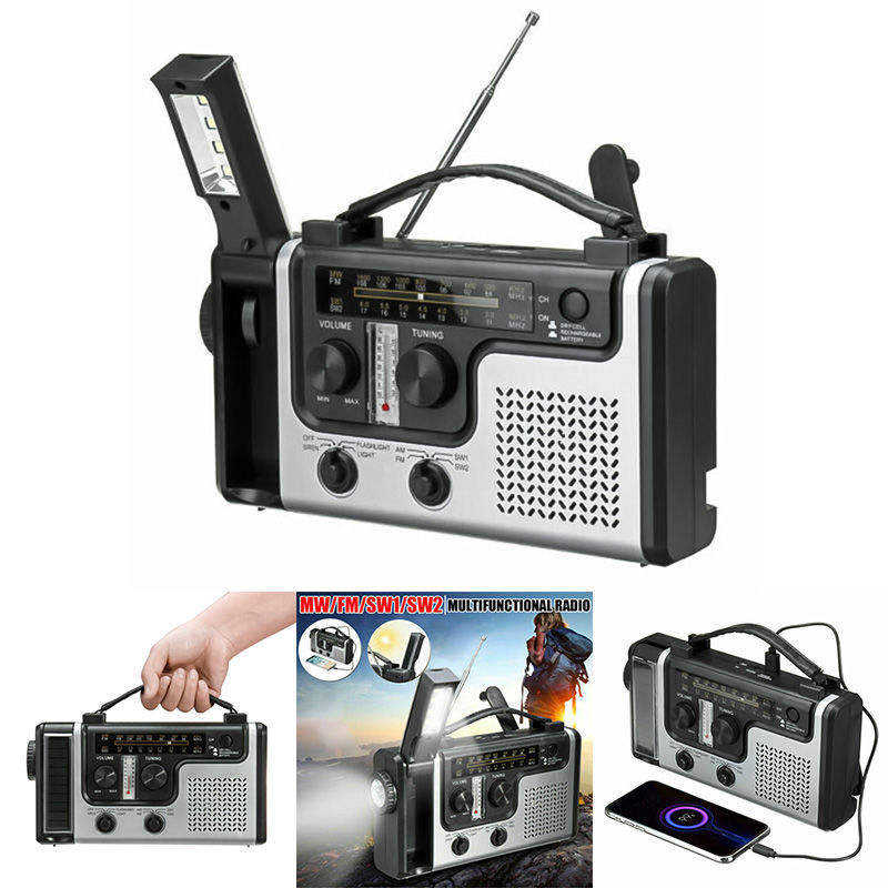 Radio Solar Portátil con Manivela, FM AM SW, Linterna Multifuncional de ABS para Acampar al Aire Libre y Uso por Personas Mayores